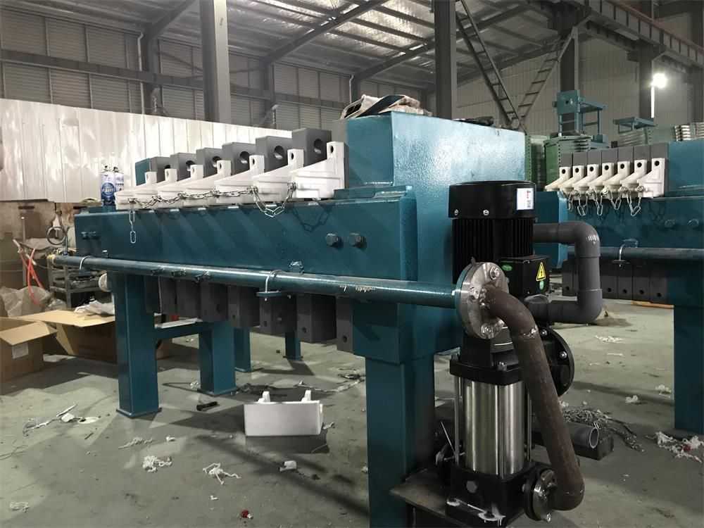 隔膜壓濾機(jī)和常規(guī)箱式壓濾機(jī)的主要區(qū)別在于,在濾板的兩側(cè)都增加了兩個(gè)彈性膜(復(fù)合橡膠膜是一個(gè)整體式膜。在操作期間,當(dāng)進(jìn)料完成時(shí),將高壓流體介質(zhì)注入膜中,并使整個(gè)膜膨脹以過(guò)濾濾餅,以進(jìn)一步使濾餅脫水,這是壓力過(guò)濾。在隔膜壓濾機(jī)運(yùn)行期間,液壓系統(tǒng)使用液壓油作為壓力載體來(lái)傳遞內(nèi)部壓力。